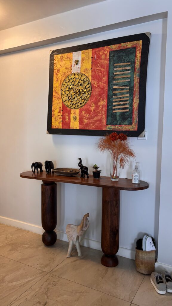 The most recent thing that she bought for her home? A wooden elephant sculpture for Kes 800. Elephants are scattered all over her home; some tiny, some carved from wood, others from soapstone, some gifted, one “accidentally” rehomed from her brother. She loves their memory, gentleness, and majesty.